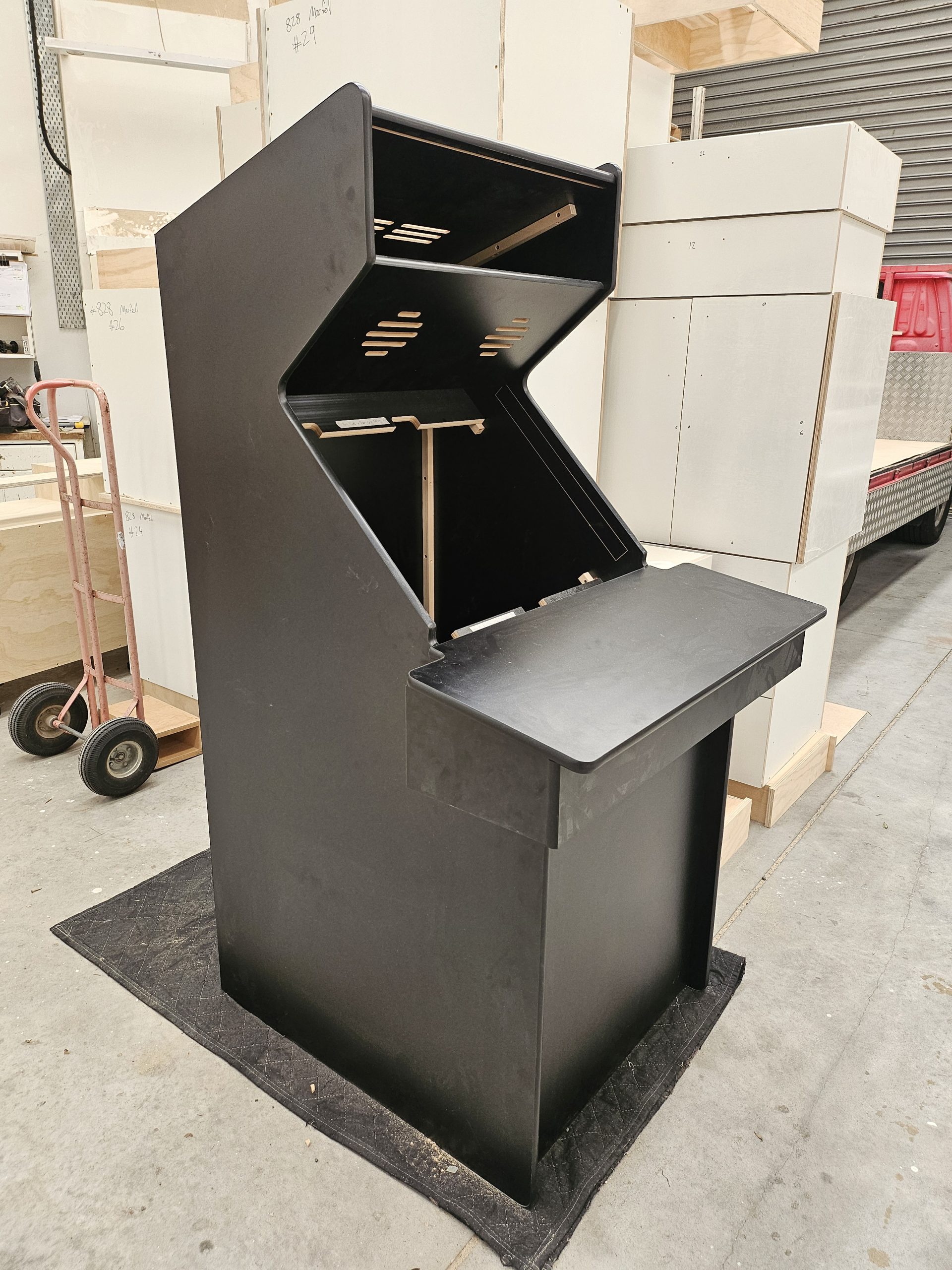 This bespoke arcade cabinet frame was custom-built by Newton Gordge Joinery in Taranaki, showcasing precision workmanship and modern CNC fabrication. Designed for commercial or recreational use, the cabinet features a durable black finish, ergonomic layout and fully customised panel design. A perfect example of NGJ’s ability to deliver unique one-off commercial joinery projects — from retail fixtures to specialty builds and custom cabinetry across New Plymouth and wider Taranaki.